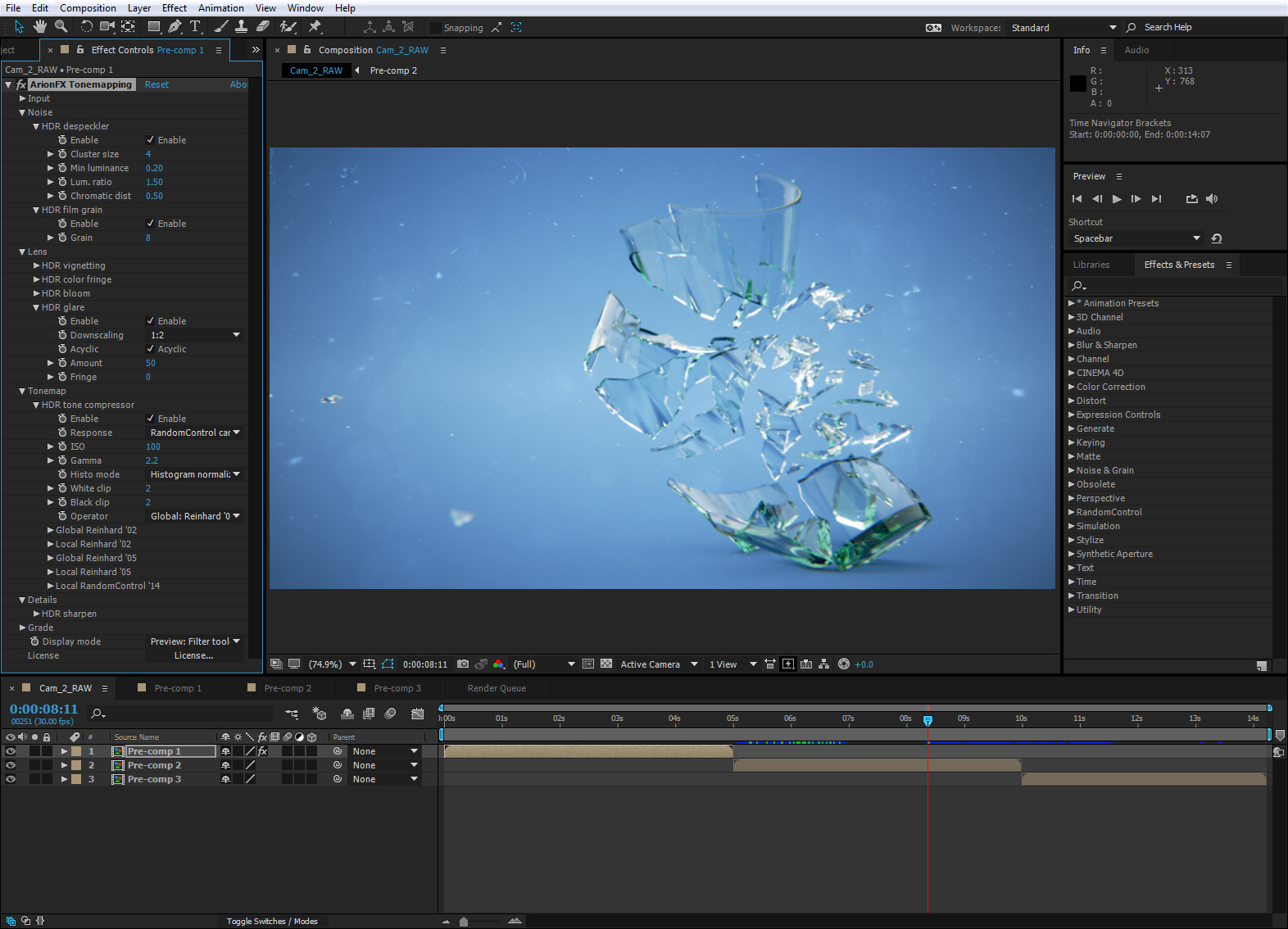 ArionFX for After Effects is a versatile tool that offers a variety of key HDR image processing algorithms designed to function in floating-point 32-bit HDR data. Remarkably, ArionFX operates in Linear Workflow, not washing out your image, and respecting its full dynamic range at all times.